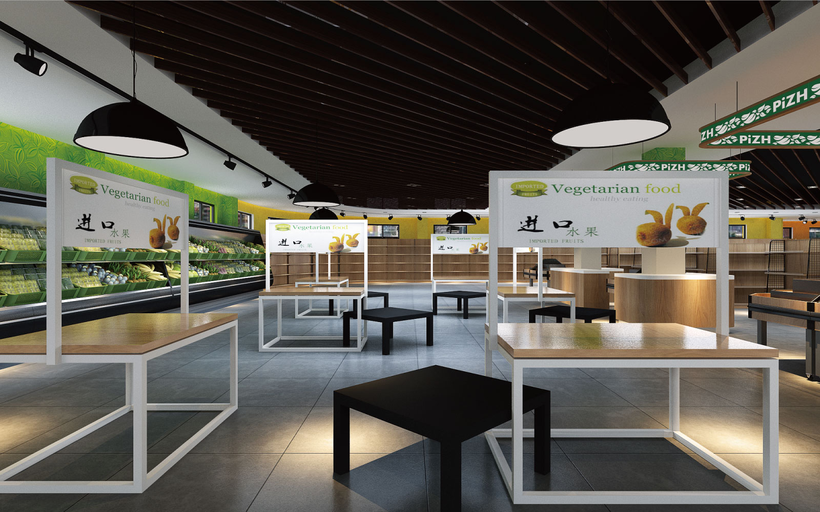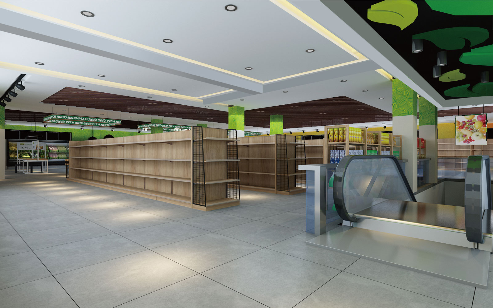 生活超市千姿百態(tài),綠色是品直多的主題色。